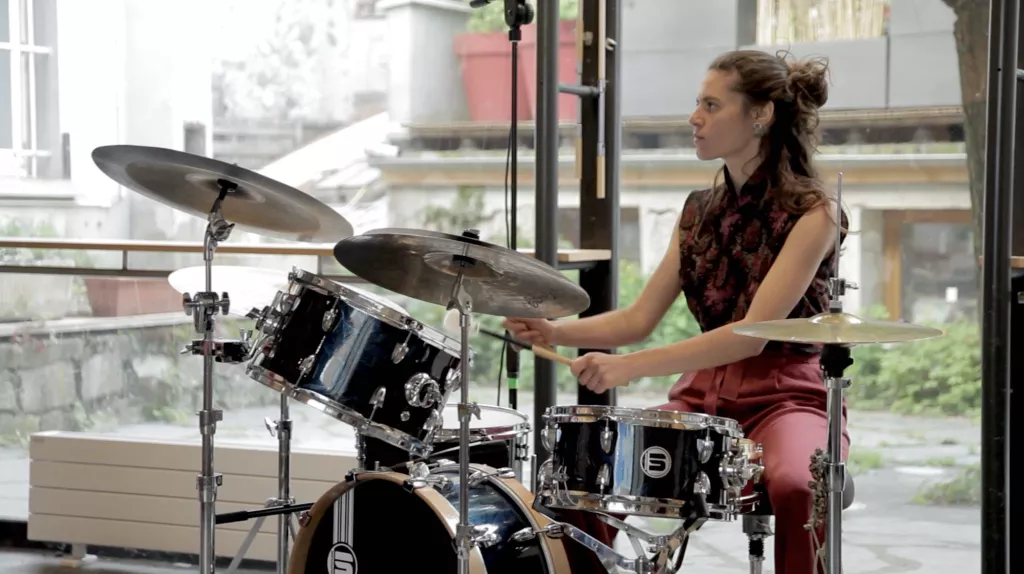 Gwenaëlle est entrée dans le milieu genevois du spectacle vivant avec Yann Marussich en 2014, puis avec la chorégraphe Mélissa Cascarino pour qui elle a joué en live et composé des bandes sonores. Elle a aussi collaboré avec les compositeurs suisse, Julie Semoroz et Thomas Chaillan. Elle a créé des atmosphères variées, en sonorisant voix, basse, mandole, percussions et instruments à vent. En 2021, elle a rejoint la Cie O pour un projet de création, puis s’est initié aux rythmes des danses par un travail approfondi aux côtés d’Aurélia Fradin. Elle a rencontré à cette occasion Elsa Wolliaston et le batteur Jean-Yves Colson. Depuis 2022, elle accompagne les cours et les stages, et déploie son jeu de batterie au contact du mouvement des danseur.euse.s.