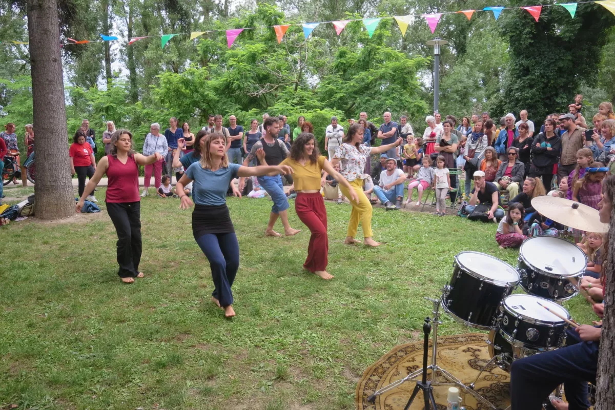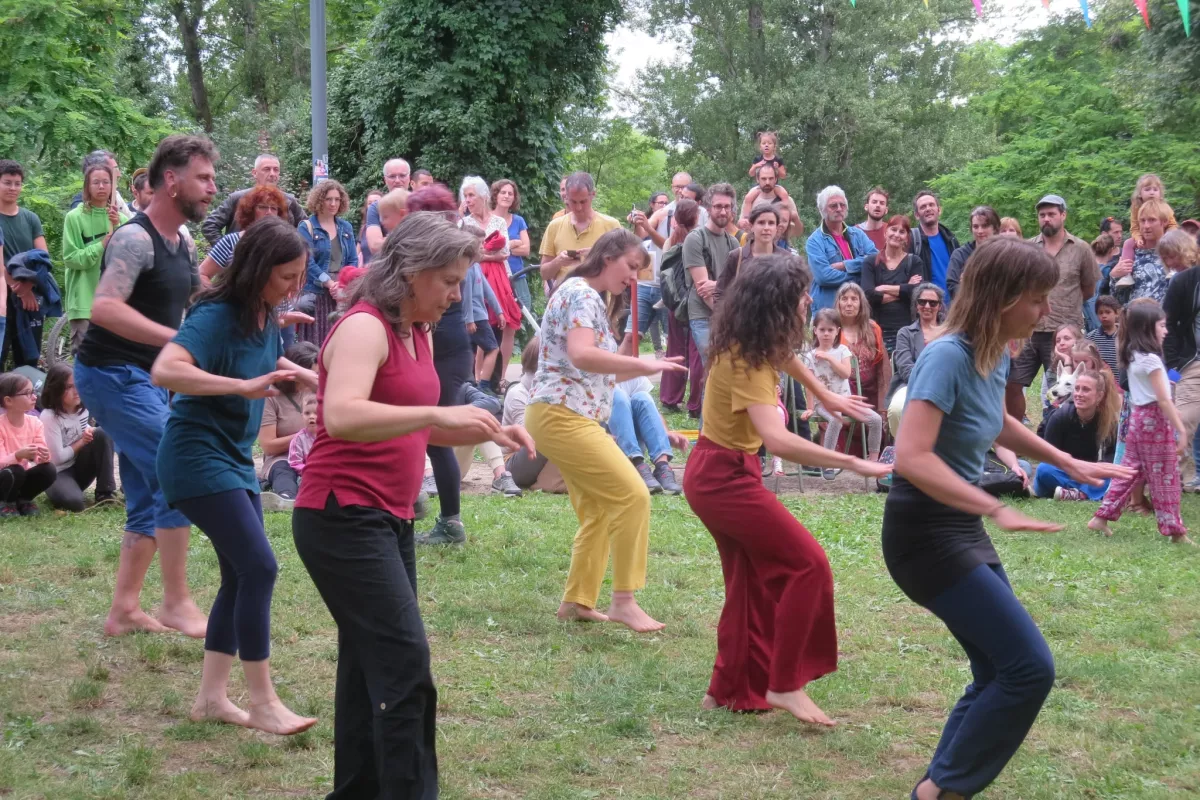 Le cours donne lieu à une restitution pour la fête de Crest’actif. Le groupe adultes a l’occasion de rencontrer le groupe enfants en vivant avec eux un beau moment de danse intergénérationnel et de montrer quelques danses apprises pendant l’année dans un esprit de partage avec les habitants de la ville de Crest !