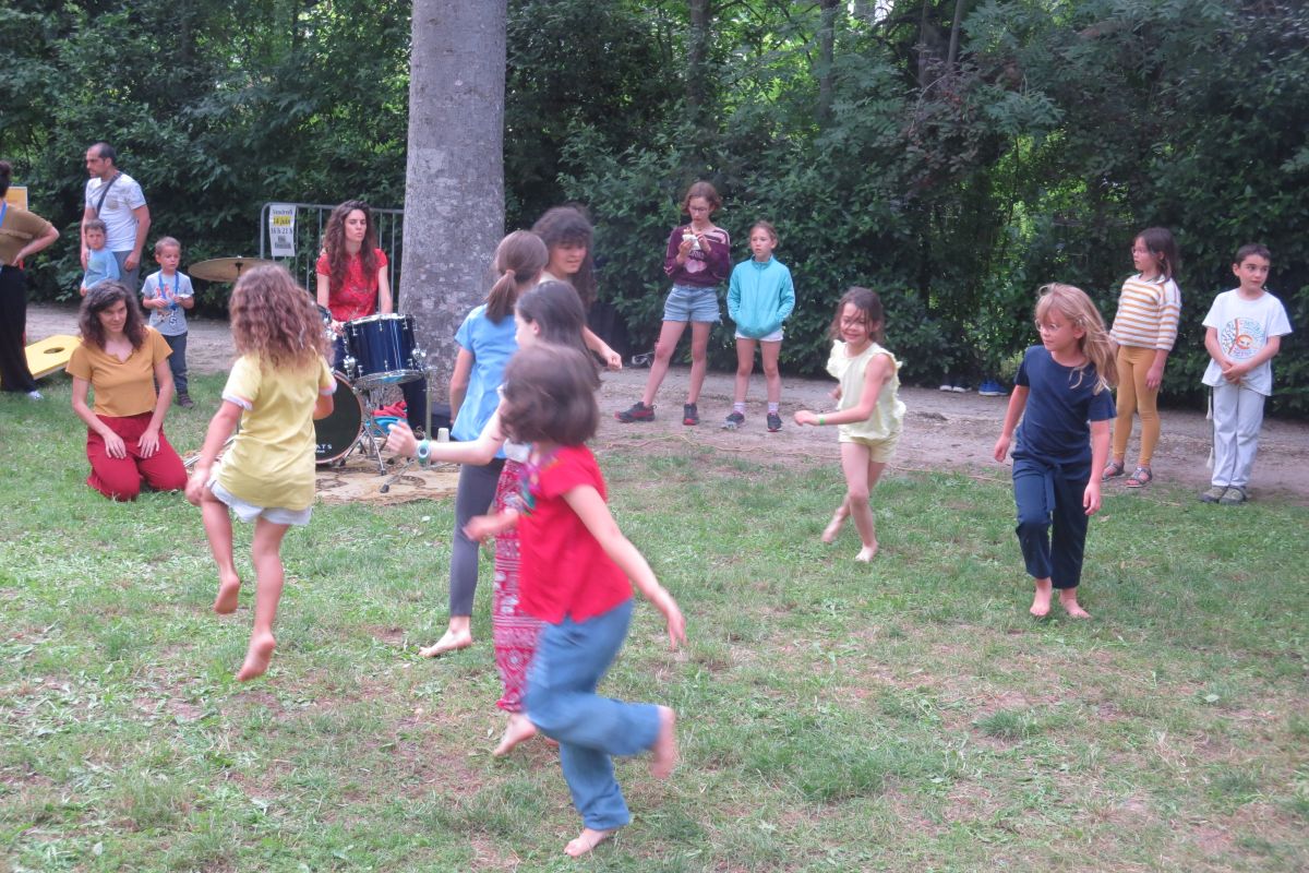 Le cours mêle gestuelle d’inspiration africaine, danse contemporaine et diverses pratiques corporelles. Aurélia Fradin crée une pédagogie qui allie immersion dans le mouvement, transmission et jeux d’improvisation. Accompagnée en direct par Gwenaëlle Chastagner Angei à la batterie, la danse devient un dialogue avec la musique, un espace pour l’expression, l’écoute du corps et la créativité des enfants.