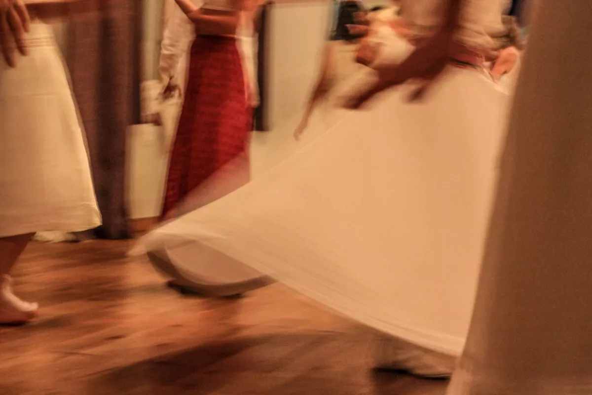 Noor est un espace d’écoute qui place l’expérience du tour en son centre. De la terre au ciel, les bras expriment le langage du cœur. La tradition du Samâ, audition spirituelle chez les derviches est ici explorée avec singularité aux croisements de différents arts du mouvement. Avec la créativité de leur cheminement artistique, Aurélia et Gwenaëlle activent ici leurs ancrages directs au cœur des spiritualités soufi et zen. Elles offrent un espace de contemplation et d’expérience où l’audible et le visible se mettent au service des différentes qualités du divin.